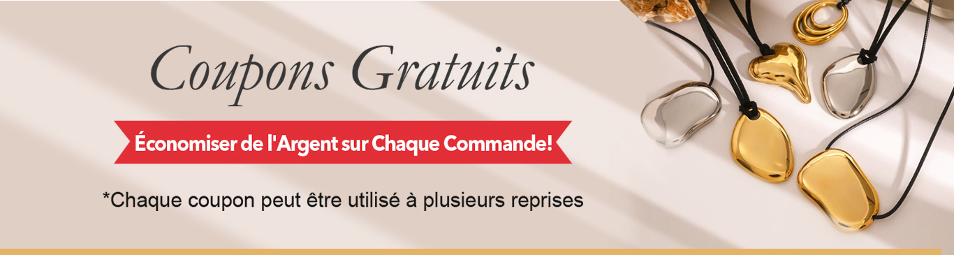 • Produits en Acier Inoxydable et produits Plaqués Or 14K & 18K ne sont pas éligibles aux coupons.